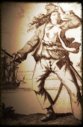 Anne Bonny (c. 1700 - c. 1782) was an Irish Pirate who operated in the West Indies. Initially a young Barmaid in Nassau, Anne quickly became acquainted with Individuals such as "Calico" Jack Rackham and Mary Read, the Latter initially posing as a Man. Launching her own Career as a Pirate, she, along with Mary and Rackham, raised a small Crew and escaped the Island in August 1720, intending to execute a Series of swift Robberies before retiring with enough Gold to live off. However, the entire Crew was arrested by the British Authorities a few Months later; Anne and Mary resisted fiercely, but were unable to beat back the Soldiers by themselves. Taken to Kingston for Trial, the two Women were able to stay their Execution by revealing they were pregnant. Anne would eventually escape Prison, but Mary perished, her Health having deteriorated after giving birth. There is no historical Record of Bonny's release or Execution. This has fed Speculation of what her Fate was after her Capture, some Examples being that she was ransomed by her Father or even that she resumed a Life of Piracy under a new Identity.